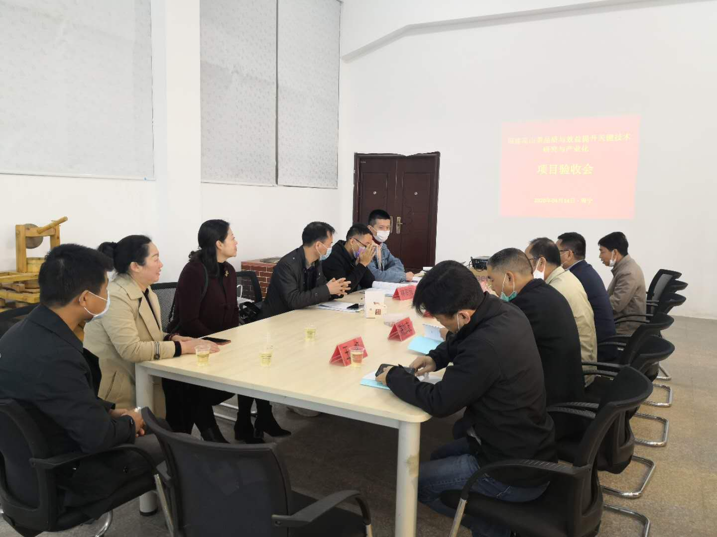 专家组一行认真审阅了验收材料,听取了项目负责人刘伟团队的汇报,验收会上专家组一致同意项目验收合格。该项目成果丰硕:构建了8个品种的化学指纹图谱,24个品种的DNA指纹图谱;设计电子鼻香气识别系统1套,建立茶叶加工流水线1条,研发出高山茶新产品2个;完成高山茶生态套种防护林营建及茶园生态安全配套技术1套;完成高山茶烘焙技术规程1套;编制ISO管理质量手册1册;专业技术职称晋升2人,发表论文5篇,授权发明专利3项。项目技术示范810亩,推广1110亩,新增产值690万元,新增利税156万;培训人员316人次。