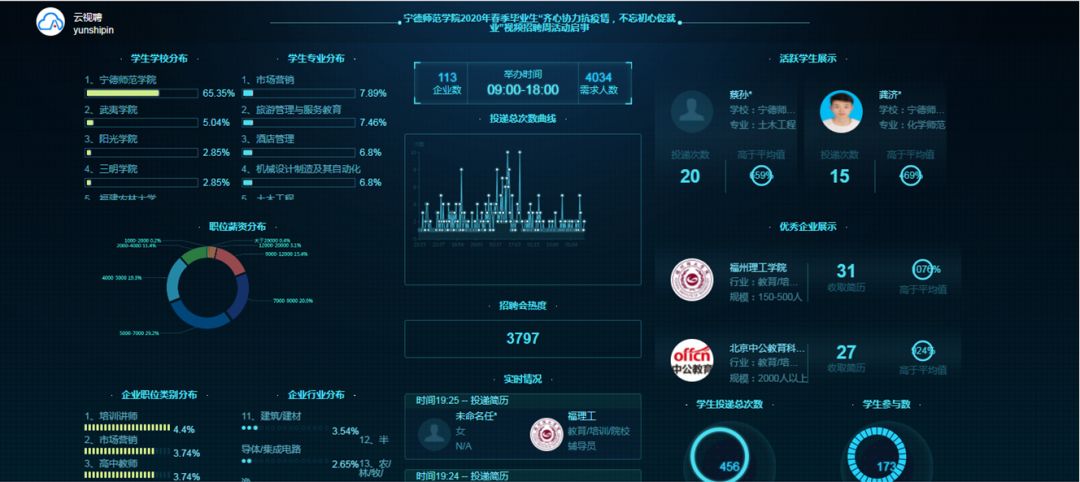 本次双选会共收到毕业生投递简历16655份,毕业生与企业通过平台预约在线面试交流共计2000余人次。