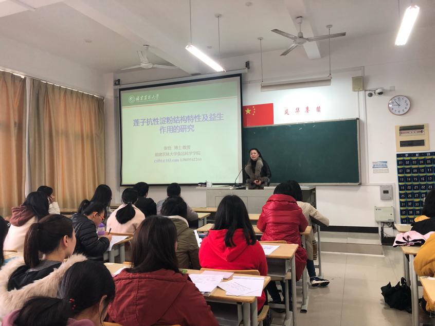 2019年1月4号上午10:30,公司于CC202开展《莲子抗性淀粉结构特性及益生作用的研究》讲座,本次讲座的主讲人是福建农林大学食品工程学院的张怡教授,出席本次讲座的有生科院的员工,以及陈美霞等三位老师。